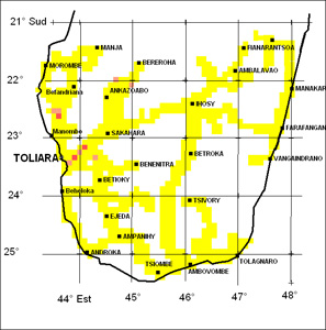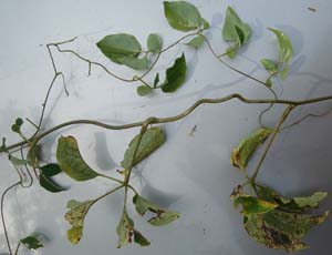 | Synonymes : Tringitringy, Trindiki ; Tsitononona, Tsiretsahy (à Ampasikibo), Tsilokarivo (à Basibasy). Tsirisafa (à Ankatepoka). Écologie : sols calcaires et sable roux, rares. Plantule : cotylédon pentafolié ou trifolié. Parfois bulbille au nœud. Plante : 3 à 5 m de hauteur. Tige : grise tachetée de blanc ou marron rougeâtre, torsadée, enroulement gauche avec bulbilles rondes. Cataphylles : courtes. Feuilles : composées de 3 ou 5 folioles de forme et de taille variable (ovales à rondes). 5 folioles pour les vieilles feuilles et 3 pour les jeunes feuilles. Quantité d’ADN : 2,1 pg / 2C. Inflorescences femelles : longues de 15 à 20 cm. Inflorescences mâles : non observées. Fruits : ronds entre 1 cm à 2 cm de diamètre de couleur beige à rose violet avec des graines rondes entourées d’une aile fine et noire. Tubercules : plusieurs, ronds de la taille d’une pomme de terre avec une pellicule protectrice. Période de collecte : précoce, récoltée en mars - avril. Matière sèche des tubercules : non déterminée. |
