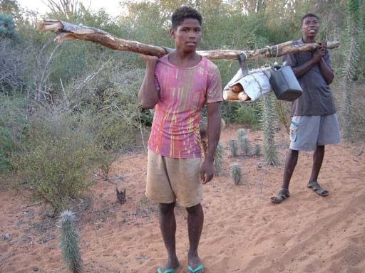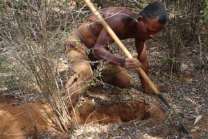 Récolte d'un tubercule de Balo dans la forêt de Ranobé (nord de Toliara)