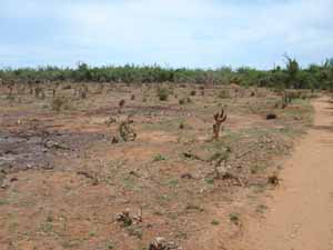 Forêt de Didiéracées détruite près d'Antevamena, à quelques kilomètres de Toliara, sur la rive gauche du Fiherena |