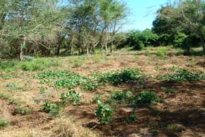 Au Fofifa, la plantation a été faite sur une parcelle en jachère (environ 400 m²) après un labour peu profond. Des buttes ont été faites et un systèmes d'arrosage par gravité aménagé.