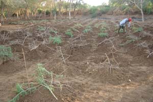 Après la plantation. Tuteurs fait de branchage d'Acacia albida |