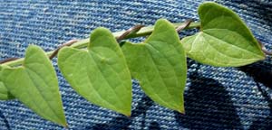Feuilles chordées alternes avec 7 à 9 nervures, épaisses et de couleur vert clair de D. heteropoda forme naine |