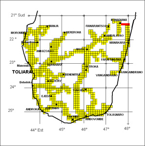 | Synonyme : oviala. Écologie : sols argilo-sabloneux sur des sols en pente. Altitude d'environ 500 m. Localisé à la région de Kianjavato. Plantule : non observée. Plante : vigoureuse et glabre, 3 - 6 m . Tige : Base de la tige légèrement épineuse (épines paraissant moins importantes que celles de D. madecassa). Robuste et gris-verte. Enroulement dans le sens des aiguilles d'une montre. Auricules importantes aux noeuds. Cataphylle : bombée. Feuilles : grandes en forme de cœur avec 5 à 8 nervures principales. Alternes parfois presque opposées avec un pétiole court et un long acumen. Nervures en relief sous la face innférieure. Quantité d’ADN : inconnue. Inflorescences femelles : assez courtes. Inflorescences mâles : longue (environ 40 cm). Fleurs espacées de 1 à 2 cm. Fruits : très allongés d'environ 4 cm de long et 1 cm de large. Tubercule : allongé et peu profond. Croissance verticale souvent dans le sens de la pente. Longueur moyenne (jusqu’à 70 cm) et de petit diamètre (4 à 8 cm) pouvant atteindre 2 m . La chair est de couleur blanche. Période de collecte : fin avril-mai mais aussi fin juin. On peut trouver deux tubercules avec en plus, celui de l’année précédente pas complètement flétri. Matière sèche des tubercules (%) : non mesuré mais serait riche en amidon. |