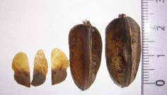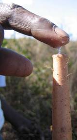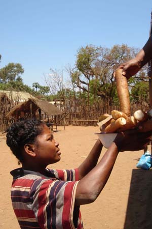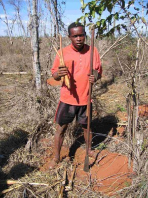 | Synonyme : Masiba, Ovin-draza, Bo (Masikoro du Fiherenana). Écologie : surtout dans le sable roux rarement sur sols calcaires. Plantule : verticille avant d'avoir un développement en liane. Plante : 4 à 5 m. Cataphylle : oreilles dentelées. Feuilles : forme de cœur plus ou moins rond , vert clair avec en général 7 nervures principales. Quantité d’ADN : 1,5 pg /2C. Inflorescences femelles : très longues (plus de 20 cm). Inflorescences mâles : longues grappes de petites fleurs. Fruits : de taille variable, assez grands (de 2 à 2,5 cm de long). Les graines sont grandes avec des ailes aussi longues que la graine. Tubercule : en forme de massue allongée avec une petite tête, moins profond que le tubercule de Balo, peau fine et lisse ou rugueuse sans poils, cassant, chair beige avec un mucilage épais. Période de collecte : toute l’année avec des pointes en octobre-novembre (la tête serait laissée en terre) et avril-mai. |