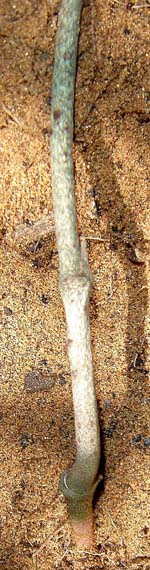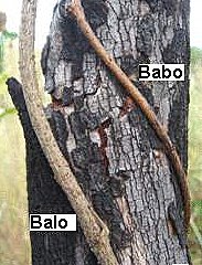 Comparaison de la tige de Balo (grise) et de Babo (orangée) sur un même tronc d'arbre