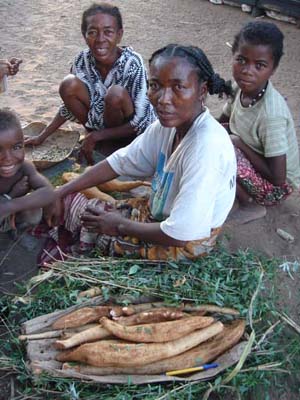 Vente de tubercules frais issus de la cueillette au village de Boakboaka près de Mangily (Nord de Toliara).