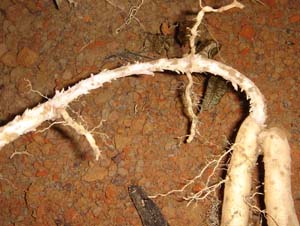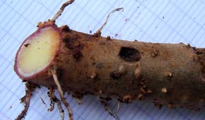 L'ancien tubercule est à droite. Remarquer la tige radicante aux noeuds