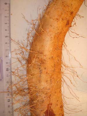Tige souterraine avec des racines à chaque noeud (tiges radicantes). Observées souvent chez les ignames malgaches